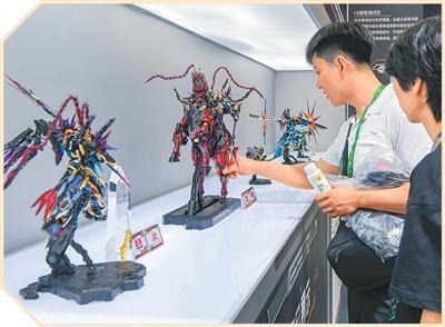 在海南省海口市第六届消博会上,参展商了解国风潮玩。 苏弼坤摄(人民图片)