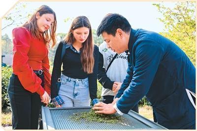近日,外国游客在安徽省黄山市祁门县体验祁门红茶传统手工制作技艺。 程启群摄(人民图片)