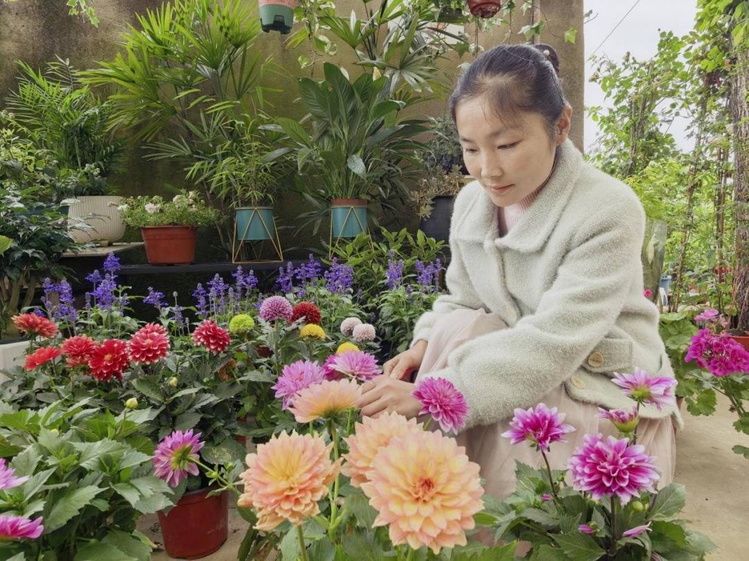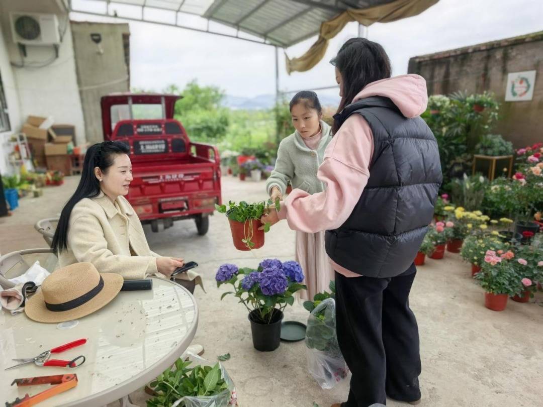 她也试着往线上闯:开淘宝店,没做起来;发抖音、视频号,看的人不多。但她没灰心,心里一直装着一个更大的愿望——不只是自己种花卖花,还想把初禾花卉园做成村里的特色产业,带着乡亲们一起干、一起挣钱,让花香飘得更远,让更多人能在家门口就把钱挣了。